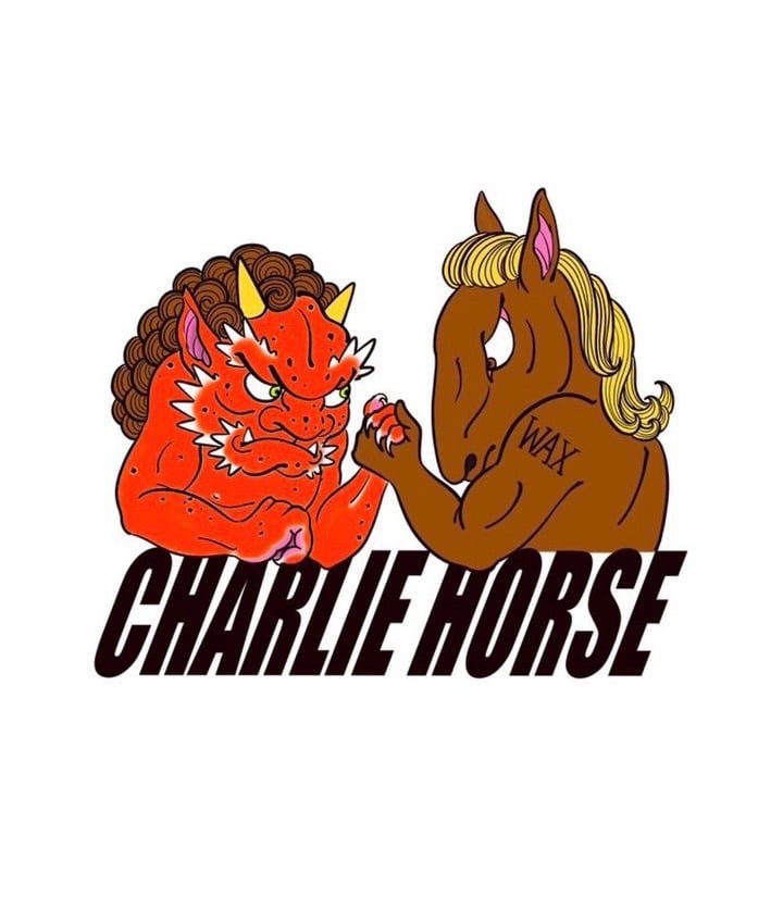 Corduroy two tone 6 panel with Charlie Horse x Oni embroidery graphics by our first guest artist Chong Tattoo.